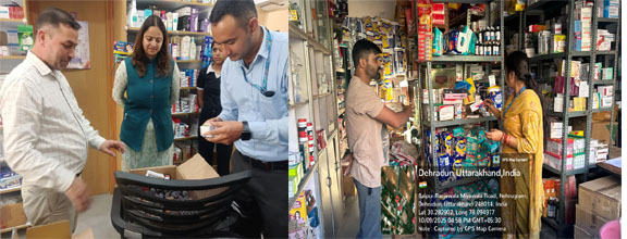 उत्तराखंड: 09 Oct. 2025, ब्रहस्पतिवार को देहरादून । स्वास्थ्य सचिव एवं आयुक्त (FDA) डॉ. आर. राजेश कुमार के निर्देशों एवं अपर आयुक्त महोदय द्वारा गठित टीम को दिए गए निर्देशों व उप औषधि नियंत्रक महोदय, खाद्य संरक्षा एवम औषधि प्रशासन उत्तराखंड के दिशा निर्देशों के क्रम में औषधि निरीक्षक ,FDA , देहरादून मानेंद्र सिंह राणा के नेतृत्व में देहरादून में दून मेडिकल कॉलेज हॉस्पिटल के आसपास, रेस कोर्स, गुल्लीघाटी रोड , मियांवाला और बालावाला स्थित मेडिकल स्टोरों का टीम द्वारा संयुक्त औचक निरीक्षण किया गया ।