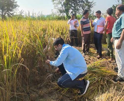 जिसमें 43.30वर्ग मीटर के प्लॉट में 17 किलो 500ग्राम धान की उपज प्राप्त हुई प्रयोग का संपादन राजस्व उप निरीक्षक द्वारा जी सी ई एस एवं सीसीई एग्री ऐप द्वारा किया गया एवं खेत से ही उत्पादन के डाटा को भारत सरकार के पोर्टल पर अपलोड किया गया उक्त आंकड़ों का प्रयोग फसलों के औसत उपज एवं प्रधानमंत्री फसल बीमा योजना अंतर्गत किया जाता है।