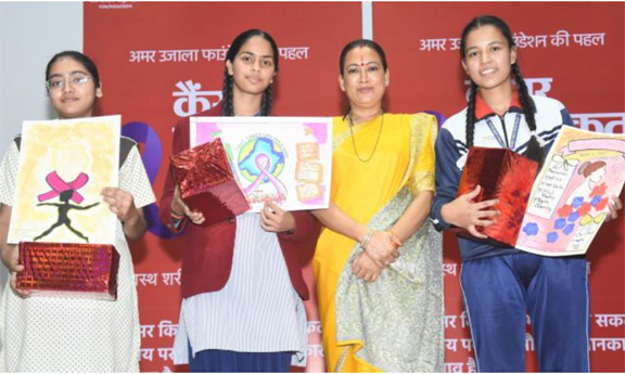 उत्तराखण्ड: 30 अक्टूबर 2025 बृहस्पतिवार को देहरादून/राजधानी स्थित दून मेडिकल कॉलेज के सभागार में अमर उजाला द्वारा आयोजित ब्रेस्ट कैंसर जागरूकता शिविर में उत्तराखंड की महिला सशक्तिकरण एवं बाल विकास मंत्री रेखा आर्या ने बतौर मुख्य अतिथि हिस्सा लिया। गुरुवार को इस अवसर पर ब्रेस्ट कैंसर विषय पर आयोजित पेंटिंग और स्लोगन प्रतियोगिता की विजेताओं को सम्मानित किया गया।
