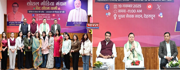 उत्तराखंड: 19 नवंबर 2025, बुधवार को देहरादून / राजधानी स्थित उत्तराखंड सीएम आवास पर   मुख्य सेवक सदन में आयोजित “सोशल मीडिया मंथन” कार्यक्रम को संबोधित करते हुए, मुख्यमंत्री श्री पुष्कर सिंह धामी ने कहा कि आज सोशल मीडिया संचार और सूचना के आदान-प्रदान का सबसे तेज और प्रभावी माध्यम बन चुका है। दुनिया के किसी भी कोने में बैठा व्यक्ति अपने विचार और अपना दृष्टिकोण को कुछ ही क्षणों में पूरे विश्व तक पहुँचा सकता है।