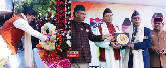 उत्तराखंड: 16 दिसंबर 2025, मंगलवार को देहरादून / राजधानी स्थित विजय दिवस के अवसर पर गांधी पार्क, देहरादून में आयोजित श्रद्धांजलि एवं सम्मान समारोह कार्यक्रम में मुख्यमंत्री श्री पुष्कर सिंह धामी ने प्रतिभाग करते हुए शहीद स्मारक पर पुष्पचक्र अर्पित कर वीर बलिदानियों को श्रद्धांजलि दी।