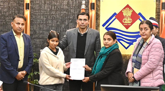 उत्तराखण्ड: 09 Jan. 2025 शुक्रवार को देहरादून। देहरादून जनपद के डीएम सविन बंसल विषम परिस्थितियों से जूझ रही होनहार बेटियों की शिक्षा को पुनर्जीवित कर उनके उज्ज्वल भविष्य का मार्ग प्रशस्त कर रहे हैं। जिला प्रशासन ऐसे परिवारों के लिए संबल बनकर उभर रहा है, जहाँ संसाधनों की कमी के बावजूद बेटियों के सपनों में उड़ान भरने का जज़्बा मौजूद है। मा0 मुख्यमंत्री के मार्गदर्शन में जिला प्रशासन बेटियों की शिक्षा को नया जीवन दे रहा है। इसी क्रम में जिलाधिकारी द्वारा जीविका अंथवाल (बी.कॉम द्वितीय वर्ष) एवं नन्दिनी राजपूत (कक्षा 11) को सीएसआर फंड से 1-1 लाख रुपये की आर्थिक सहायता प्रदान की गई है। दोनों बेटियों की शिक्षा को विगत सप्ताह प्रोजेक्ट ‘नंदा-सुनंदा’ के माध्यम से पुनर्जीवित की गई है।