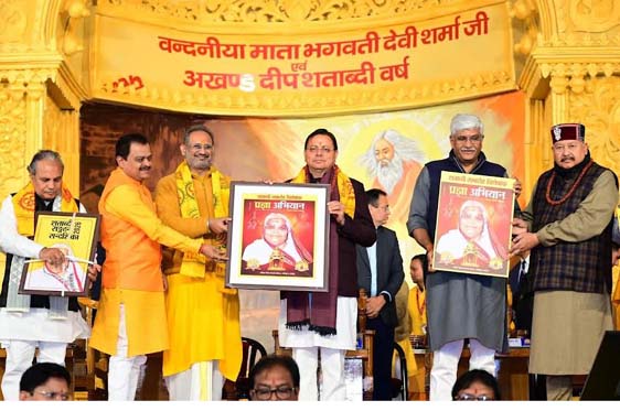 इस अवसर पर मुख्यमंत्री श्री पुष्कर सिंह धामी ने कहा कि यह शताब्दी समारोह वंदनीया माता भगवती देवी शर्मा के तपस्वी जीवन, निःस्वार्थ सेवा और अखंड साधना के प्रति राष्ट्र की कृतज्ञता का साक्षात भावात्मक अभिव्यक्ति है। माताजी का संपूर्ण जीवन त्याग, बलिदान और साधना की वह ज्योति है, जिसने असंख्य जीवनों को सही दिशा और नई दृष्टि दी।