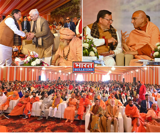 उत्तराखंड: 05 FEB.2026, ब्रहस्पतिवार को देहरादून । धर्मनगरी हरिद्वार स्थित सप्तऋषि आश्रम मैदान (भारत माता मंदिर के समीप, सप्त सरोवर मार्ग) में मुख्यमंत्री श्री पुष्कर सिंह धामी ने आयोजित ‘संत सम्मेलन’ में प्रतिभाग किया।