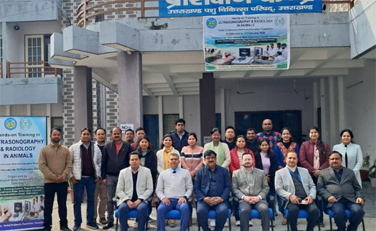 उत्तराखण्ड: 09 Feb. 2026 सोमवार को देहरादून।  उत्तराखण्ड राज्य पशुचिकित्सा परिषद, देहरादून द्वारा पशुपालन विभाग के 20 पशुचिकित्स अधिकारियों के लिए सात दिवसीय प्रशिक्षण कार्यक्रम आयोजित किया गया। कार्यक्रम का शुभारम्भ डॉ. कैलाश उनियाल, अध्यक्ष, उत्तराखण्ड राज्य पशुचिकित्सा परिषद, डॉ. उदय शंकर, निदेशक, पशुपालन विभाग, और डॉ. नारायण सिंह नेगी, संयुक्त निदेशक, पशुपालन विभाग द्वारा दीप प्रज्ज्वलन कर किया गया।