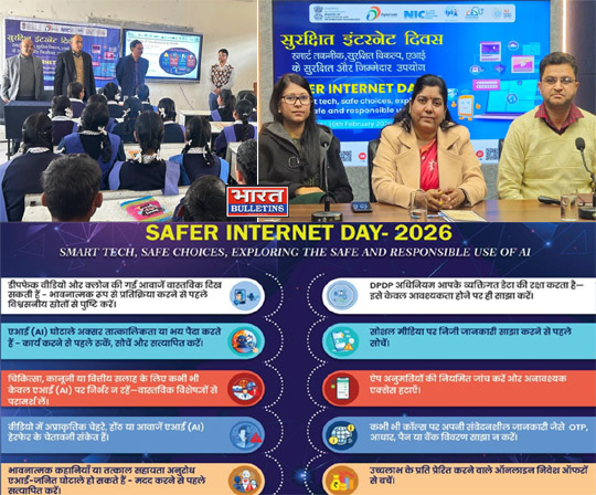 उत्तराखंड: 10 FEB.2026, मंगलवार को देहरादून । एन.आई.सी. उत्तराखंड द्वारा विद्यालयी शिक्षा निदेशालय के सहयोग से दिनांक 10 फरवरी 2026 को देहरादून में विभिन्न राजकीय विद्यालयों में “सेफर इंटरनेट डे” का आयोजन किया गया। इस विषय पर राज्य सूचना विज्ञान केंद्र (एन.आई.सी.) के अधिकारियों द्वारा विद्यार्थियों, शिक्षकों एवं अन्य प्रतिभागियों को साइबर क्राइम तथा साइबर जागरूकता के बारे में अवगत कराया गया । इस कार्यशाला का मुख्य उद्देश्य प्रायः हो रहे अनलाइन फ्रॉड एवं ए.आई. का दुरुपयोग जैसे डीपफेक एवं अन्य प्रकार के फ्रॉड से समाज को सुरक्षित करने की जागरूकता फैलाना है । इस संबंध में स्वयं तथा परिजनों को जागरूक करने की आवश्यकता है ।