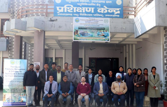 उत्तराखण्ड: 17 Feb. 2026 मंगलवार को देहरादून। पशुचिकित्सा विज्ञान के बदलते परिदृश्य को दृष्टिगत रखते हुए पशुपालन विभाग के पशुचिकित्साधिकारियों के कौशल विकास हेतु उत्तराखण्ड राज्य पशुचिकित्सा परिषद द्वारा मंगलवार, 17 फरवरी को पशुपालन विभाग में कार्यरत 20 पशुचिकित्साधिकारियों के लिए तीन दिवसीय प्रशिक्षण कार्यक्रम “Fractures Management & Orthopaedic Techniques in Animals for Field Veterinarian” का आयोजन किया गया।