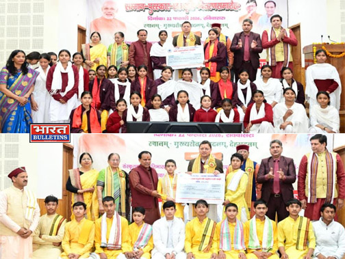 उत्तराखंड: 22 FEB.2026, रविवार को देहरादून । मुख्यमंत्री कैम्प कार्यालय स्थित मुख्य सेवक सदन में मुख्यमंत्री श्री पुष्कर सिंह धामी ने संस्कृत छात्र प्रतिभा सम्मान कार्यक्रम में भाग लिया। इस अवसर पर उन्होंने गार्गी बालिका संस्कृत छात्रवृत्ति, डॉ. भीमराव अंबेडकर अनुसूचित जाति, अनुसूचित जनजाति संस्कृत छात्रवृत्ति भी विद्यार्थियों को प्रदान की। कार्यक्रम के दौरान मुख्यमंत्री ने प्रतियोगी परीक्षा स्वाध्याय केन्द्र एवं ई-संस्कृत संभाषण शिविर का वर्चुअल शुभारंभ और उत्तराखण्ड संस्कृत विश्वविद्यालय के त्रैमासिक पत्र संस्कृत वार्ता का विमोचन भी किया।