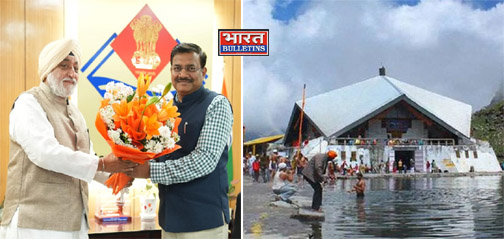 उत्तराखण्ड: 16 MARCH.2026, सोमवार को देहरादून/राजधानी स्थित उत्तराखण्ड सचिवालय में श्री हेमकुंड साहिब मैनेजमेंट ट्रस्ट के अध्यक्ष श्री नरेंद्र जीत सिंह बिंद्रा ने मुख्य सचिव श्री आनंद बर्धन से शिष्टाचार मुलाकात की। इस अवसर पर श्री बिंद्रा ने मुख्य सचिव को अवगत कराया कि श्री हेमकुंड साहिब के कपाट आगामी 23 मई को श्रद्धालुओं के दर्शनार्थ खोले जाएंगे।