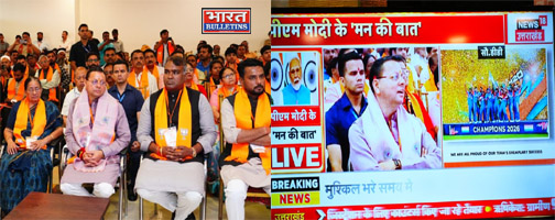 उत्तराखण्ड: 29 MARCH.2026, रविवार को देहरादून/राजधानी स्थित होटल रॉयल इन पैलेस, इन्द्रानगर में मुख्यमंत्री श्री पुष्कर सिंह धामी ने आयोजित प्रधानमंत्री जी के ” मन की बात” कार्यक्रम के 132वें एपिसोड को सुना। इस अवसर पर उन्होंने उपस्थित जनप्रतिनिधियों एवं नागरिकों के साथ कार्यक्रम के विभिन्न पहलुओं पर विचार साझा किए।
