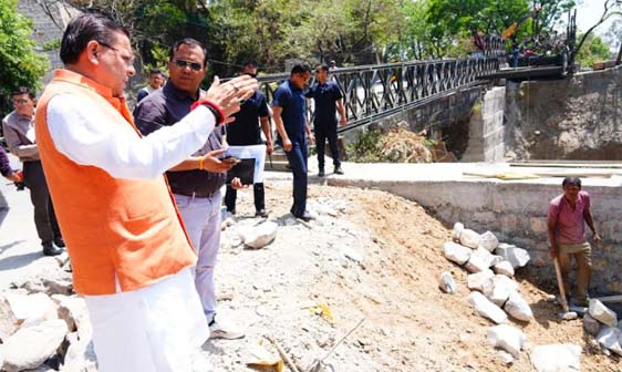स दौरान सीएम धामी ने कहा कि इस स्थान पर स्थायी पुल का निर्माण कार्य भी प्राथमिकता के आधार पर किया जा रहा है, जिसे आगामी 2 से 3 माह के भीतर पूर्ण करने का लक्ष्य निर्धारित किया गया है। उन्होंने कहा कि राज्य सरकार प्रदेश में सड़कों एवं पुलों के सुदृढ़ीकरण हेतु निरंतर प्रयासरत है। उन्होंने कहा कि विभिन्न क्षेत्रों में सड़क एवं पुल निर्माण से संबंधित अनेक परियोजनाएं तेजी से क्रियान्वित की जा रही हैं, जिससे प्रदेश के दुर्गम क्षेत्रों को बेहतर कनेक्टिविटी मिल सके।